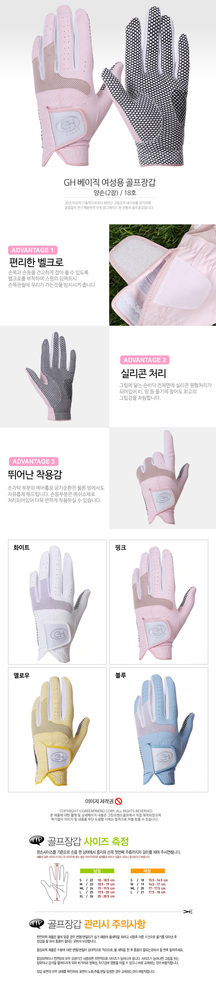GH 합피 단색 여성용 양손 골프장갑