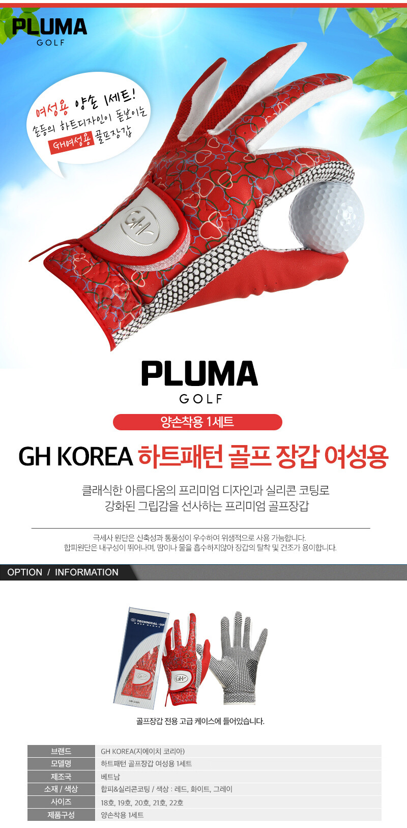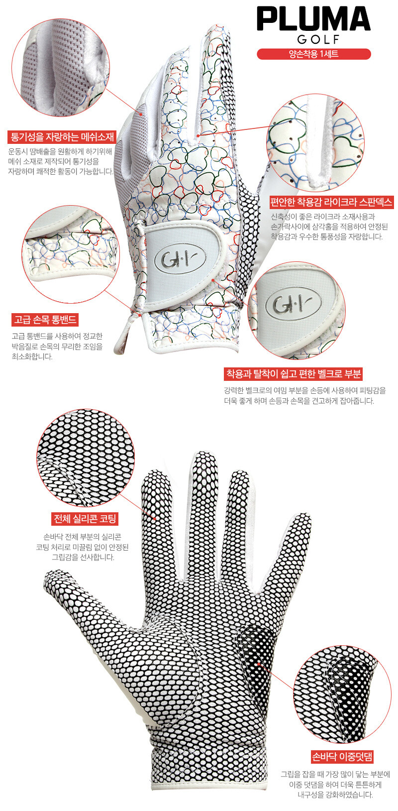GH 하트 3종 여성용 양손 골프장갑 1켤레